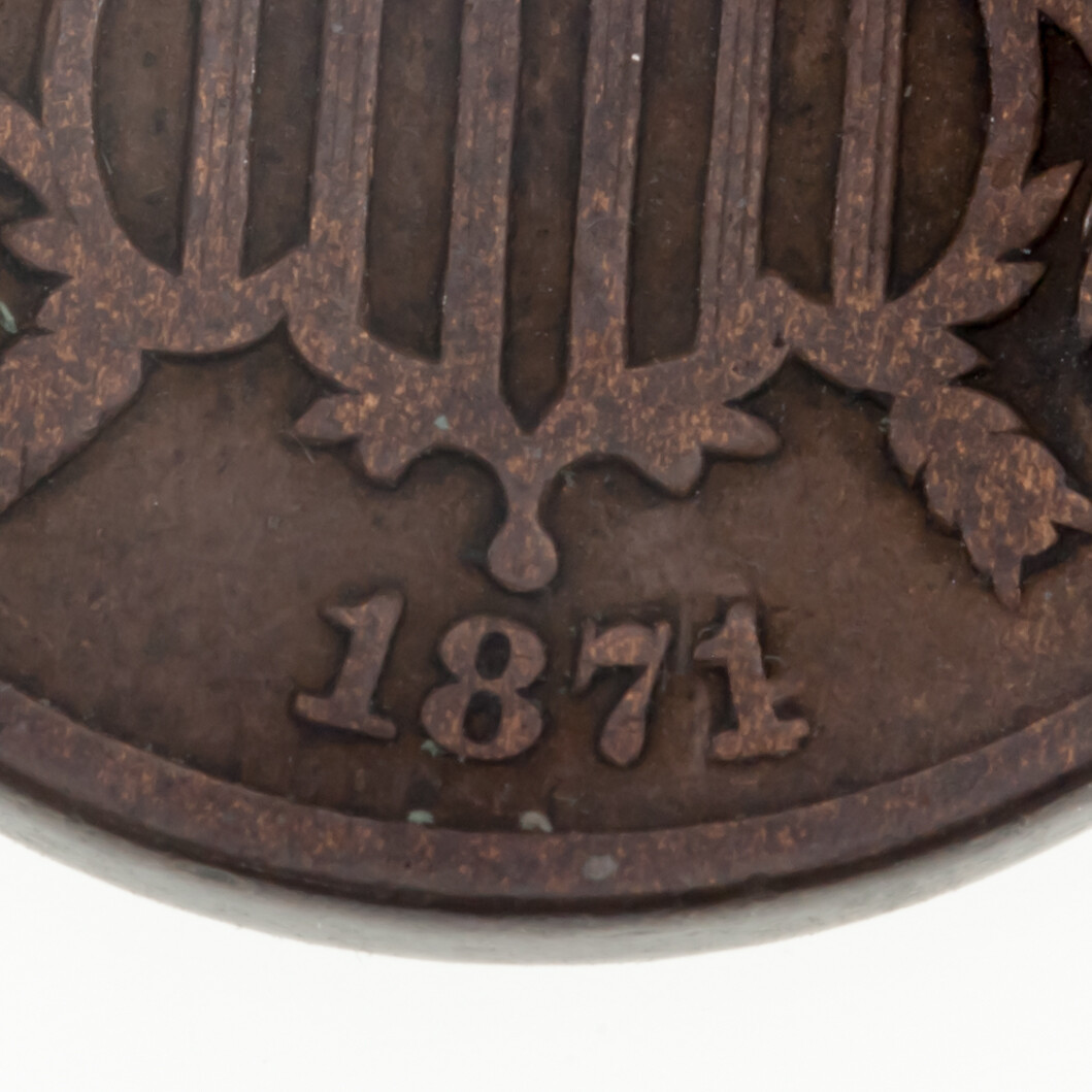 1871 Dos Centavo Pieza, Buen Estado, Todo Marron Color, Completo Rims