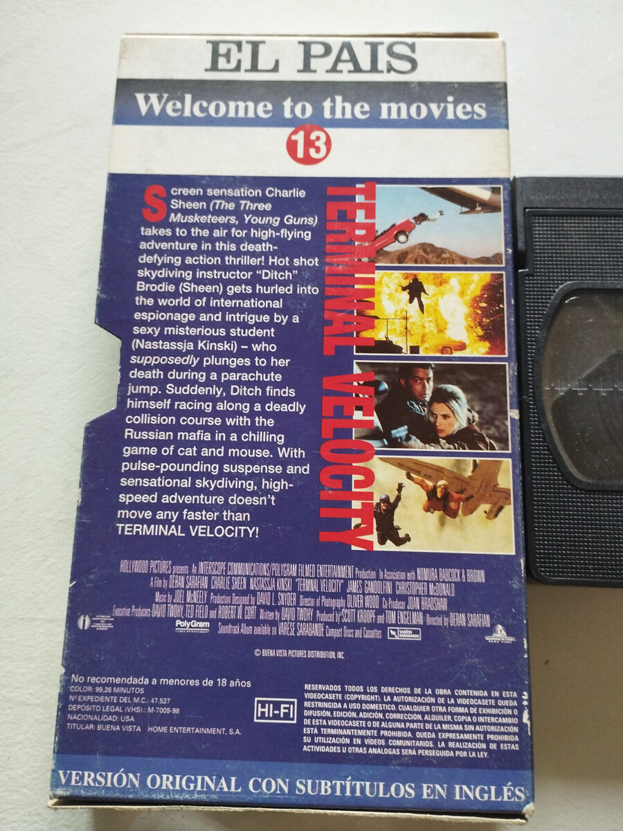 Terminal Velocity Charlie Sheen Nastassja Kinski - VHS Cinta Tape Anglais