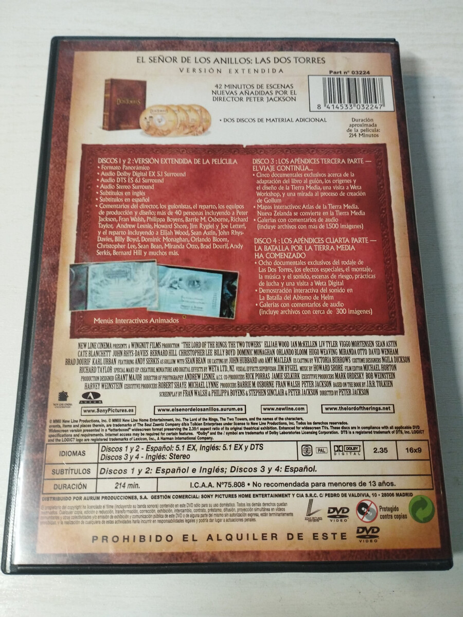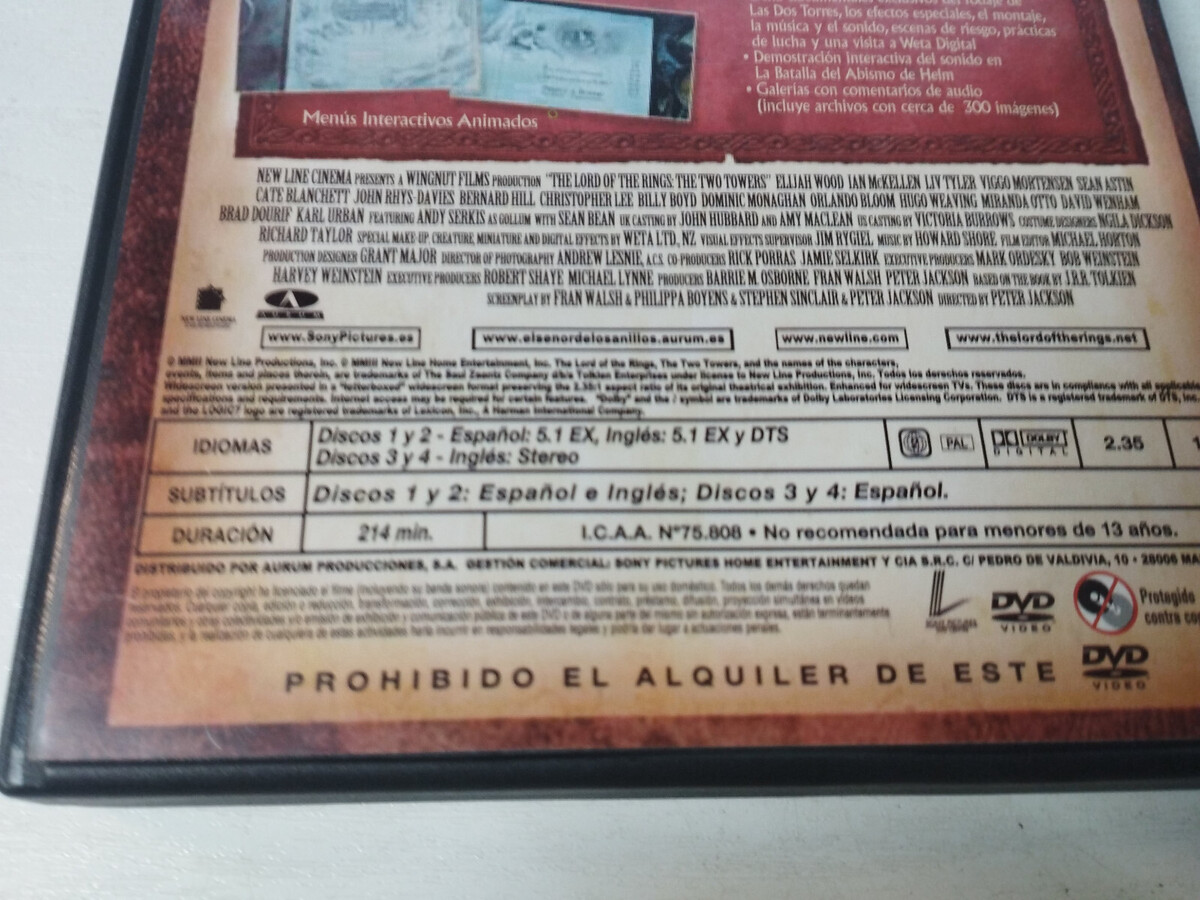 El señor de los anillos Las dos Torres Version Etendu 4 X DVD Region 2 Am