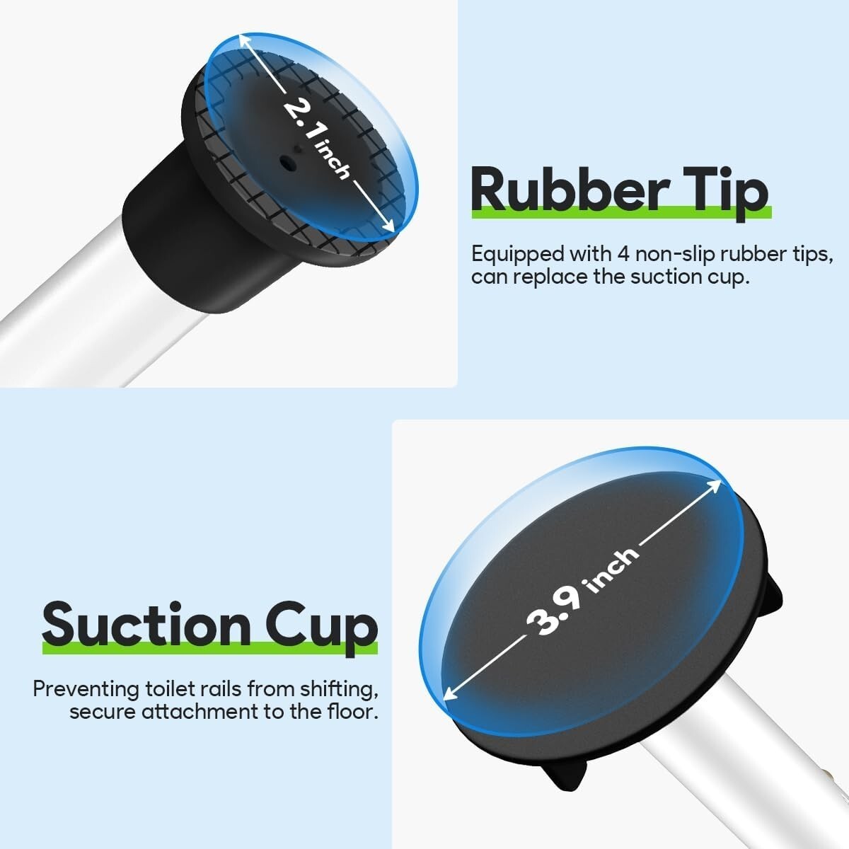 Prevent slips and falls with secure rubber feet and strong suction cups