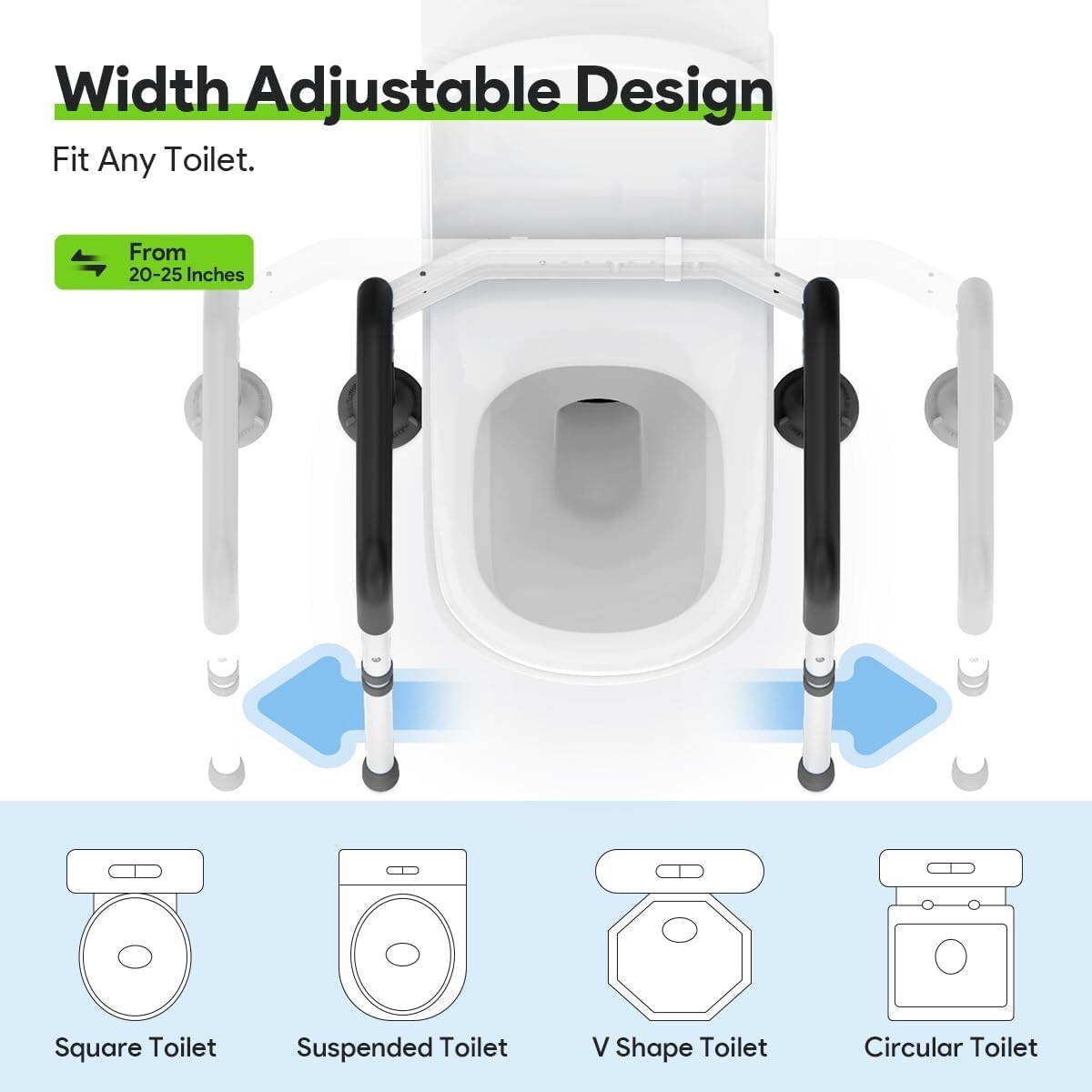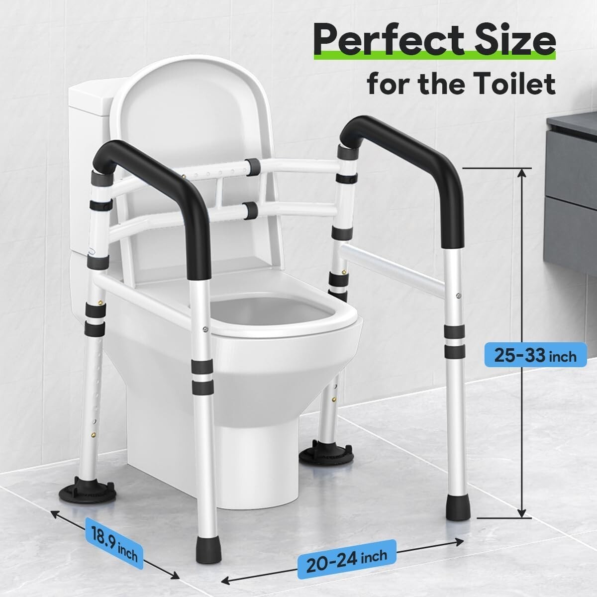 Non-Slip Toilet Assist Rail for Elderly - Supports 300 lbs, Adjustable Design