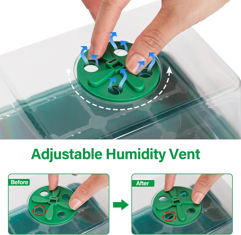 Adjustable Humidity Domes: The kit includes 5 elevated humidity domes to maintain optimal humidity levels for seed germination and plant growth.