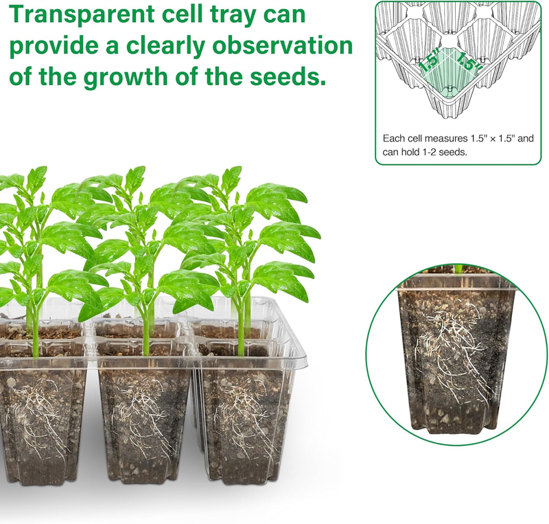 Clear Cell Tray: The clear cell tray allows you to closely monitor plant growth without disturbing their progress.