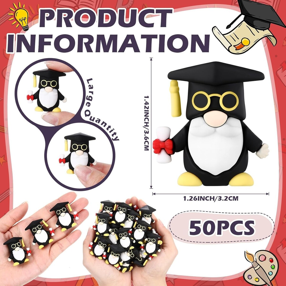 50 Pcs Graduation Mini Gnome Figurines 1.5" School Party Favors Decorations