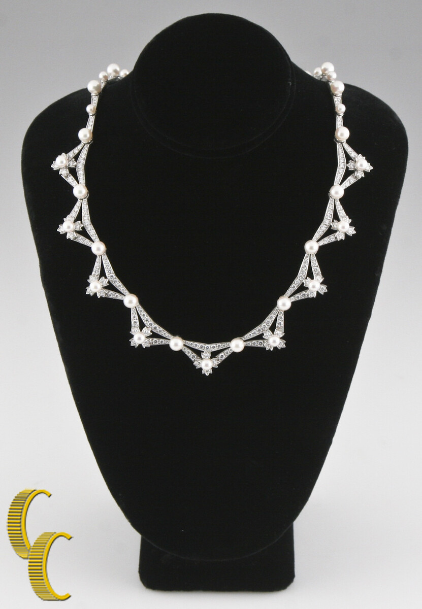 Tiffany & Co 5.00 carat Diamond & Pearl Platinum Necklace