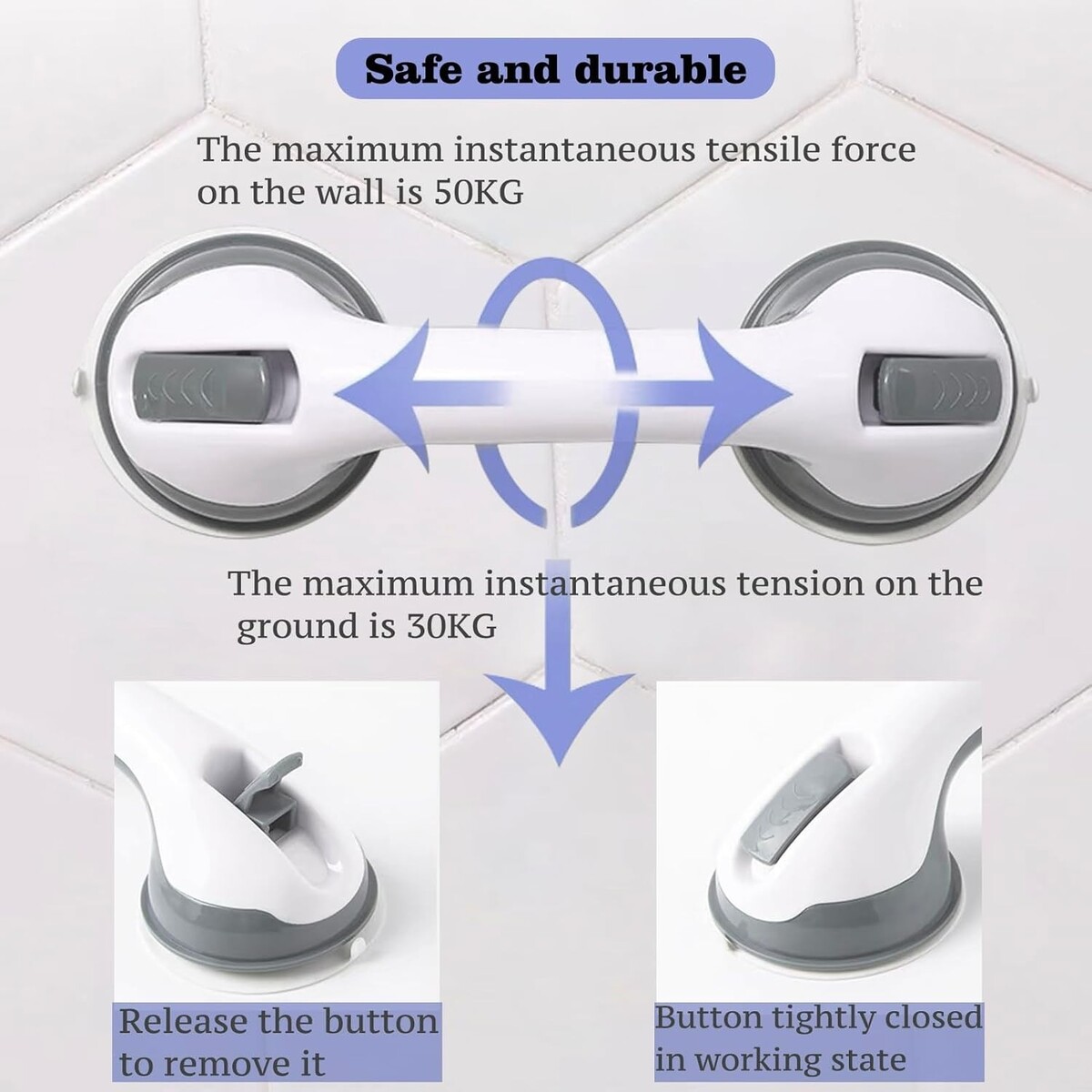 Tool-Free Installation: Effortlessly enhance your bathroom's safety?no tools or drills required. Simply mount these grab bars quickly and independently for a hassle-free setup. (Note: Ensure the ceramic wall surface is flat, clean, and dry for optimal adhesion.)