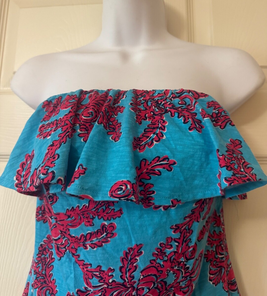 Lilly Pulitzer Wiley Ruffled Tube Top Blouse Rhode Island Reef Size Small NWOT