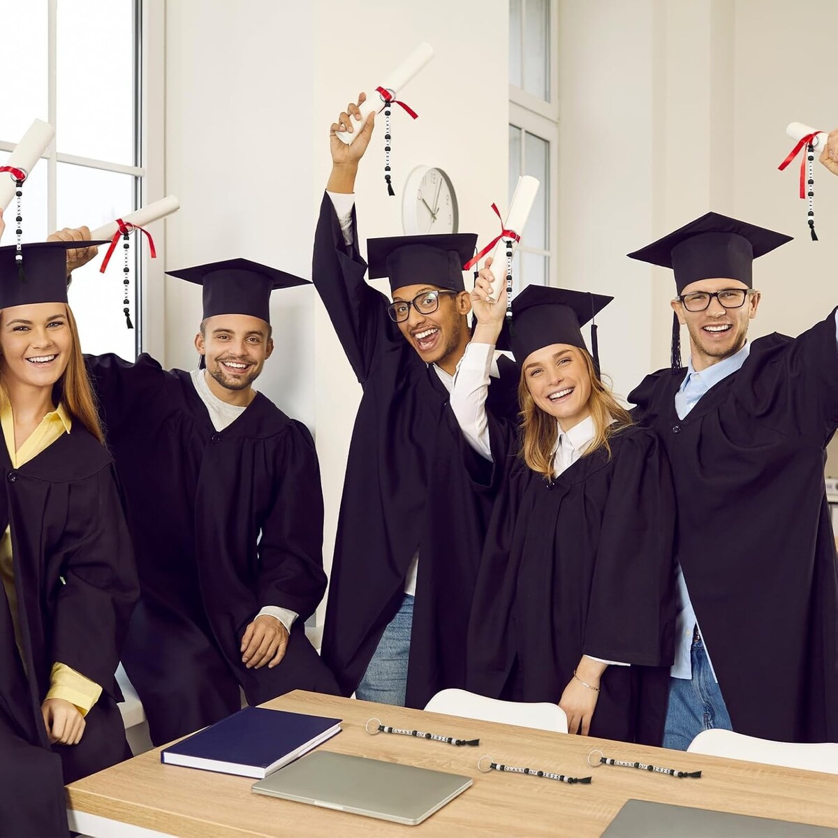 Sureio 24 Pcs 2025 Gifts Trinkets Bulk Congrats Graduation Keychain for Prom Black White