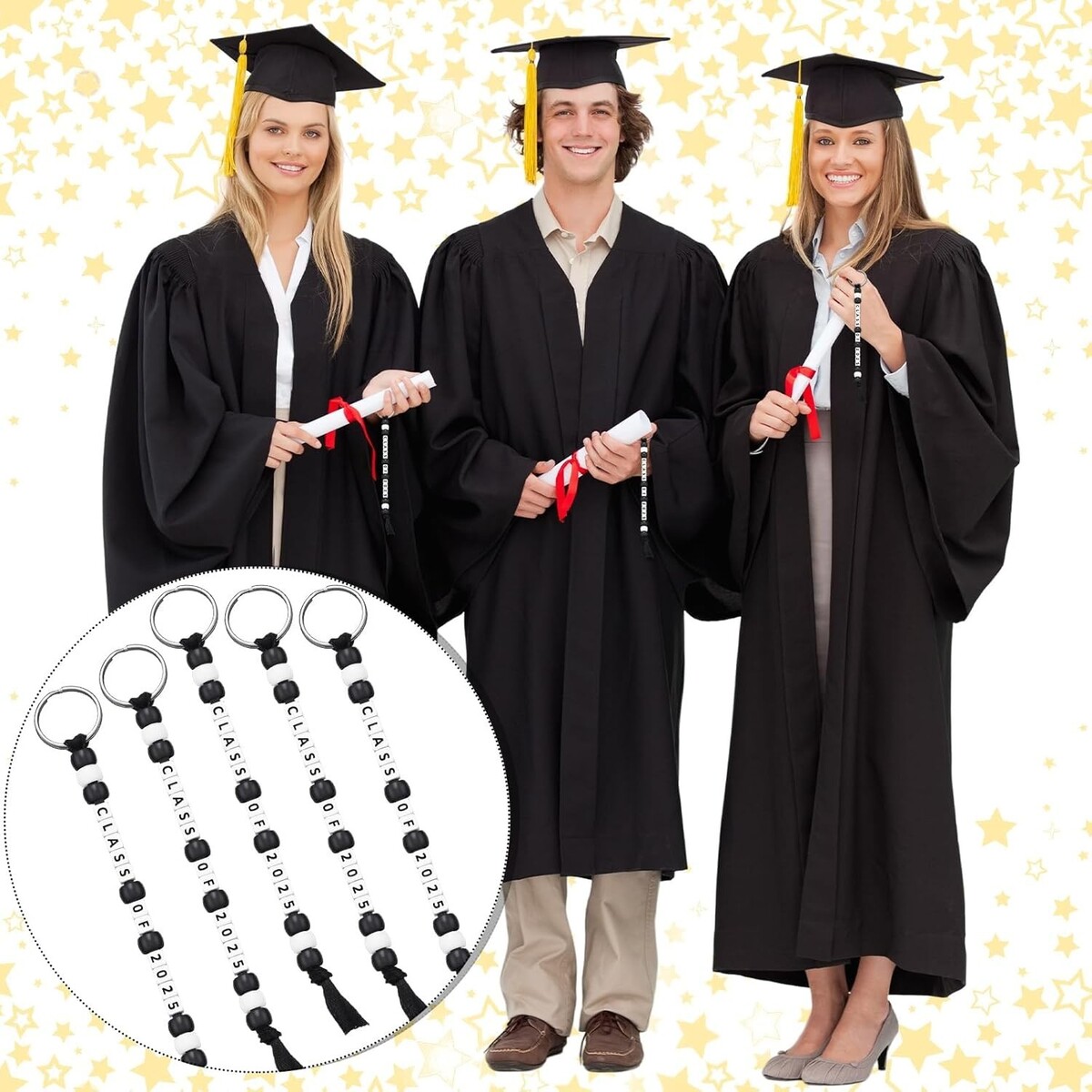Sureio 24 Pcs 2025 Gifts Trinkets Bulk Congrats Keychain for Prom Black & White