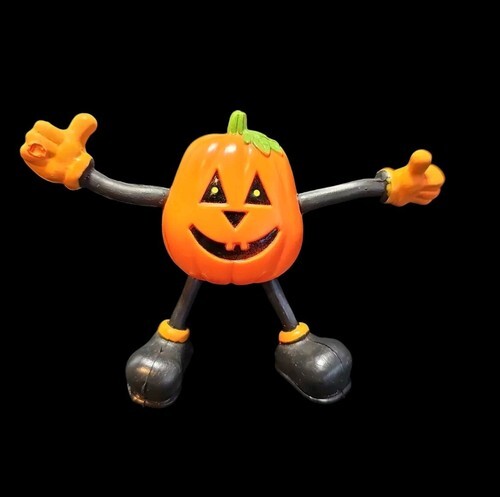 UP FOR SALE: Halloween Fun World Div Pumpkin Jack O Lantern Vintage Bendable Bendy Figure