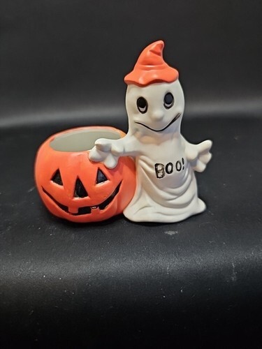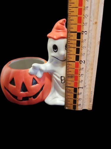 Vintage Halloween Figural Fall Decor Black Cat Ghost Jack O Lantern Lot Of 3 Pcs