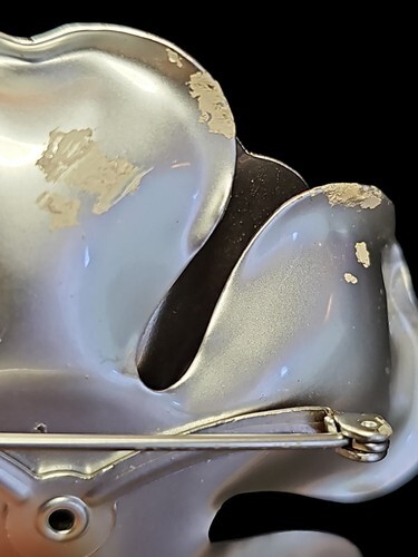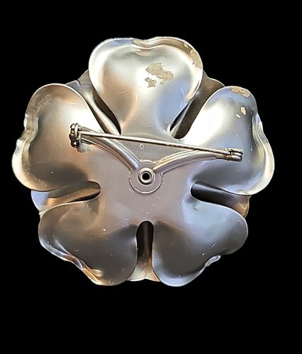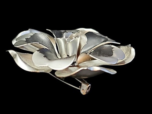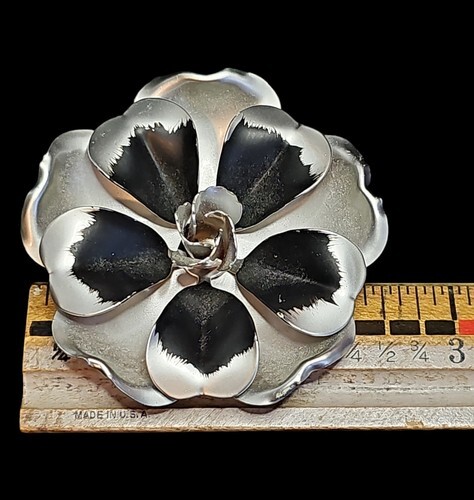 UP FOR SALE: Vintage 60s-70s Aluminum Large Silvertone Metal Flower Brooch 3 Dimensional