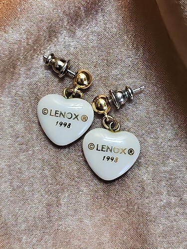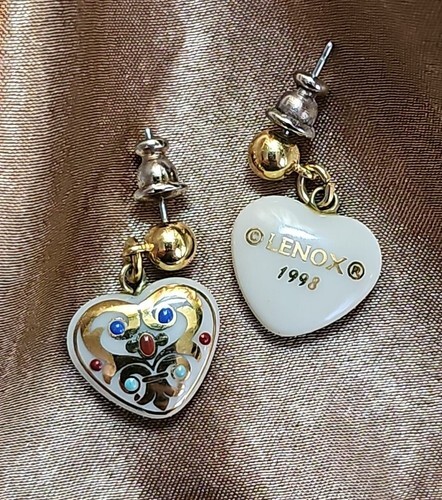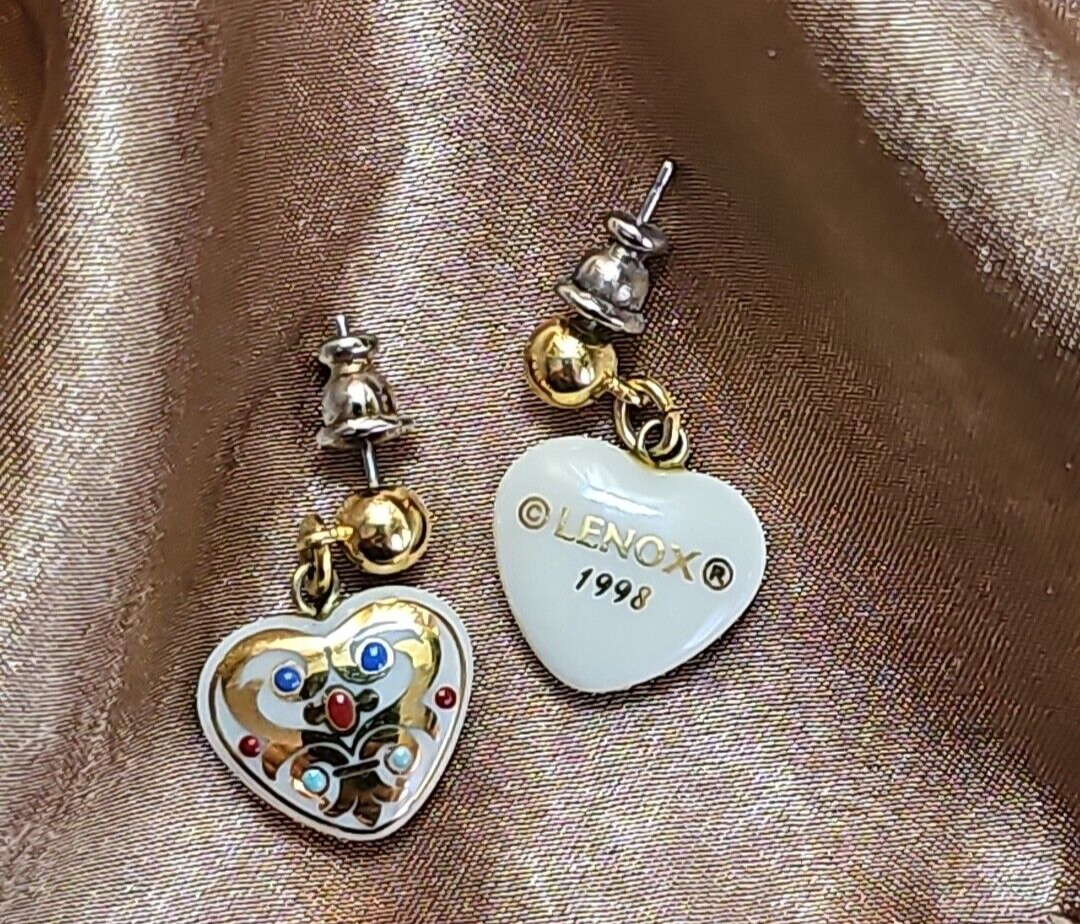 UP FOR SALE: Vintage 1998 Lenox Heart Porcelain Gold Dangle Earrings Jewels Collection Scarce