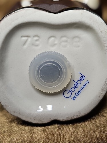 Certain private individuals have commissioned Goebel to reproduce older motifs in blue and green and red for their own personal profit. These include ornaments in four colors, a red cookie jar with black collar and fat decanters in red, green and blue with black collars and blue and green banks. I look at these in the same light as ?reproductions? and I don?t give them the importance as the original pieces as released by goebel. The special ?club? pieces are different in that the ?profit? goes to furthering the hobby