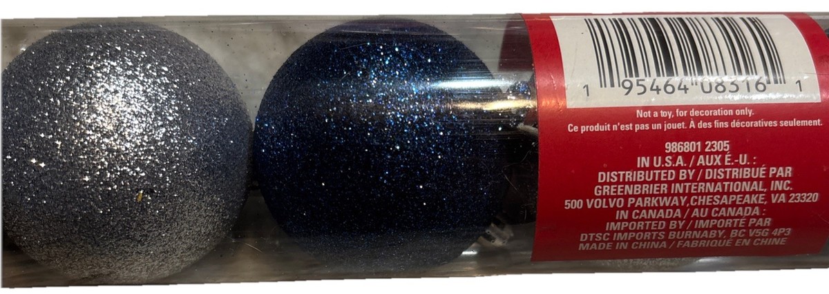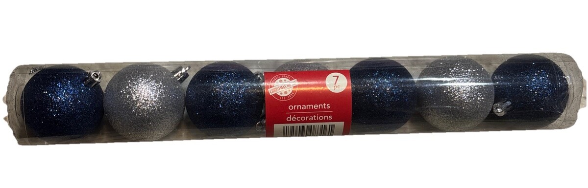 7 Christmas House Blue/Silver Glittered Glass Ornaments. 2 Inches—SHIPS N’ 24HRS