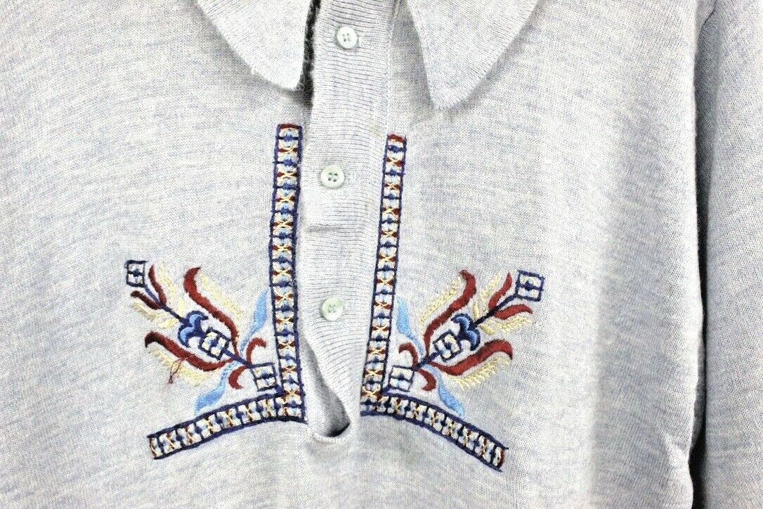 1970s VTG Puritan Blue Acrylic Polo Sweater Crest Embroidery Soft Touch Sz L