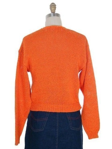 1980s VTG Bright Orange Metallic Knit Sweater Padded Shoulders Covered Buttons S