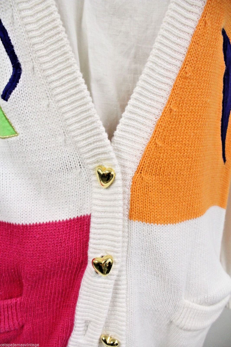 1992 VTG Marie Diamond Sweater Suit Colorblock Appliqué Cardigan Blouse Skirt M