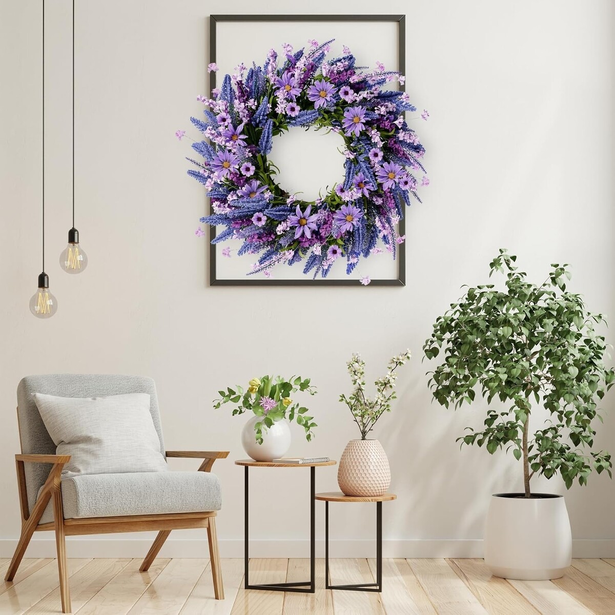 Durable 22'' Artificial Lavender Wreath ? Perfect for Entrances Festivities