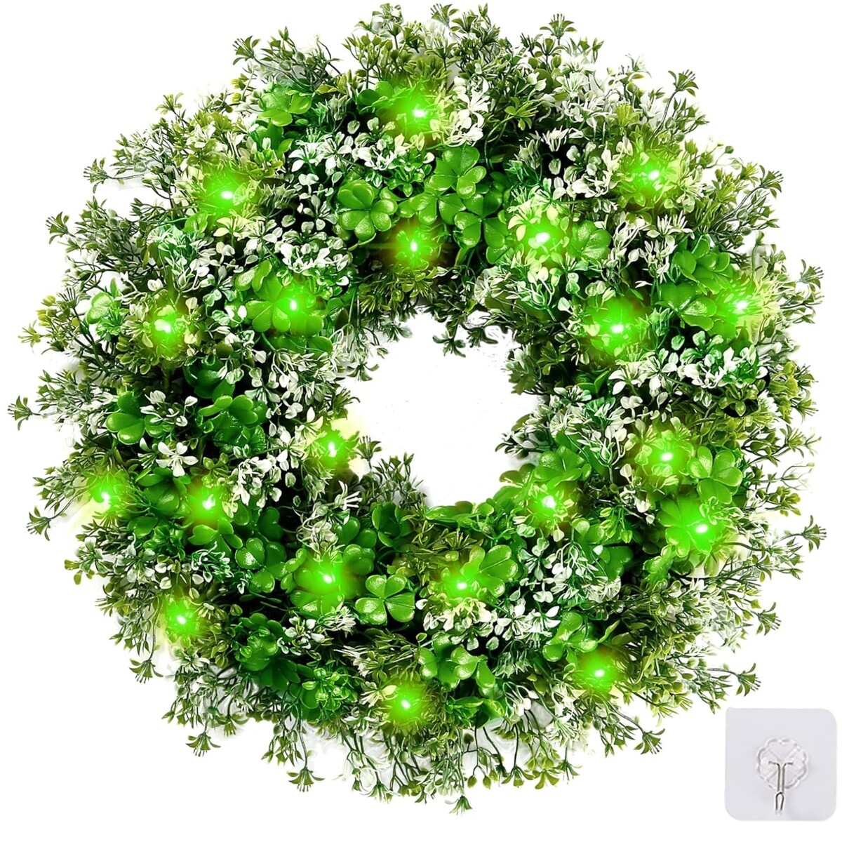 17.7'' St. Patrick's Day Shamrock Wreath with 30 LED Lights for Charming Decor