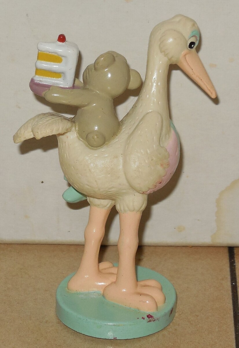Vintage 1992 Bundles By Applause Stork Figurine with teddy bear Gift Cake Topper