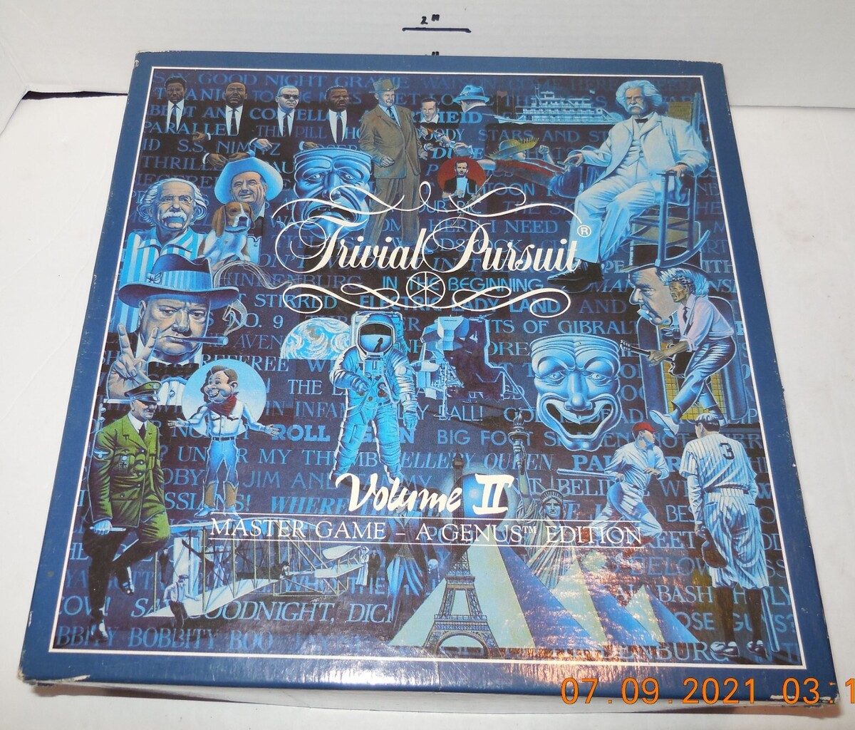 For Sale is a 1987 Horn Abbot Coleco Games Trivial Pursuit Volume 2 Master Game Genius edition Board Game 100% COMPLETE. it in good Used condition. comes with the Pieces as seen in the pictures provided what you see is what you will receive. Please ask Any and All Questions prior to purchasing. Fast Same or Next day shipping with Free Delivery Confirmation within the U.S. Payment Due within 7 days of purchase (if you need more time please let us know In advance) we love to combine shipping is always a Yes and Most of the time Additional Items Ship for free.