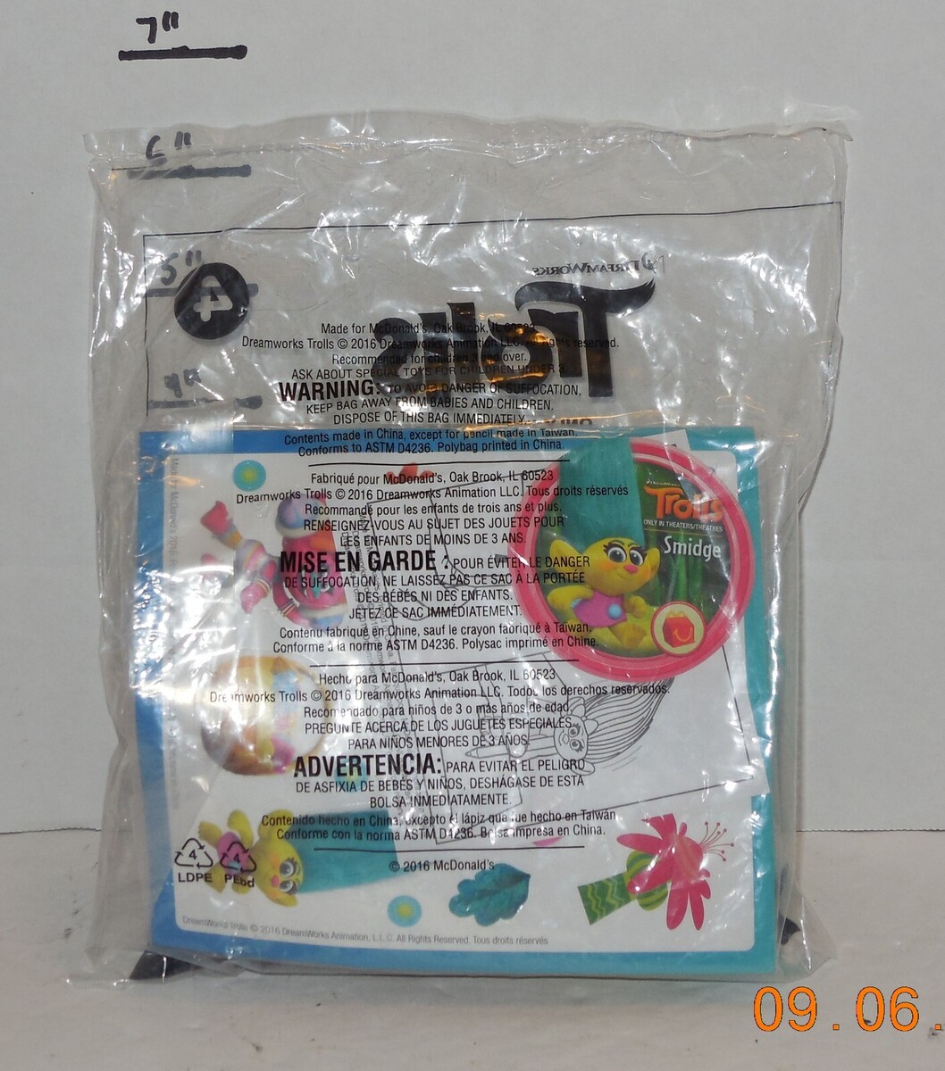 For Sale is a rare and hard to find vintage 2016 McDonald's Happy Meal Toy Dreamworks Trolls #4 Smidge MIP. Its In MIP Condition as pictured. would make a great addition to any fast food toy collection. Please ask Any and All Questions prior to purchasing. Fast Same or Next day shipping with Free Delivery Confirmation within the U.S. Payment Due within 7 days of purchase (if you need more time please let us know In advance) we love to combine shipping is always a Yes and Most of the time Additional Items Ship for free. FFI716