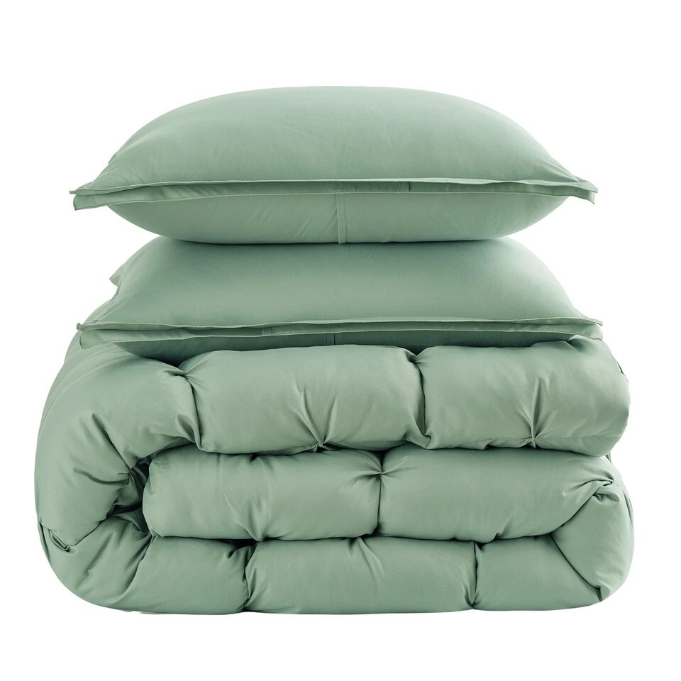 Elevate your bedroom with the perfect mix of softness, style, and warmth. This comforter set features a lofty pintuck design on the comforter that adds texture and visual depth, and the baffle box construction keeps the fill evenly distributed, creating a look that?s timeless and inviting. The super soft fabric is machine washable for easy care and everyday comfort.