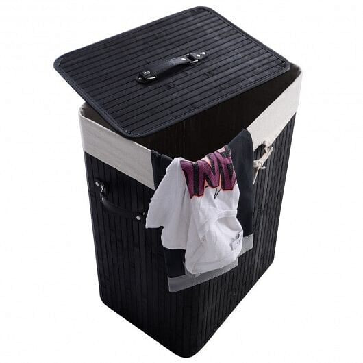 Rectangle Bamboo Hamper Laundry Basket Washing Cloth Bin Storage Bag Lid 3 color-Black - Color: Black