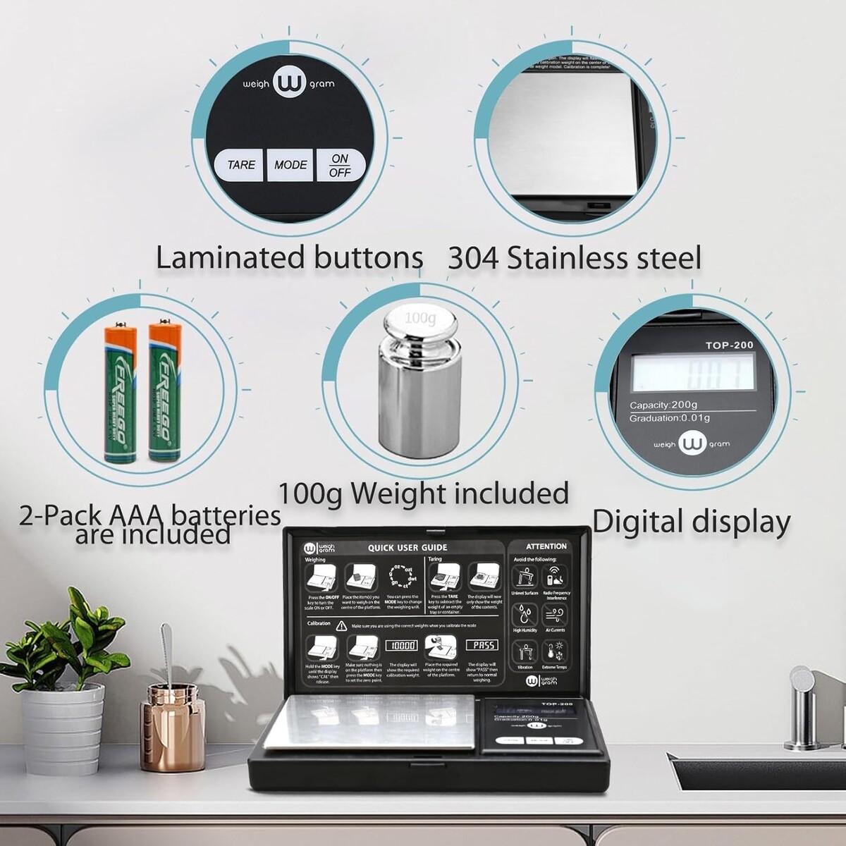 Calibrating Made Easy: Includes simple calibration instructions and calibration weight for effortless setup.