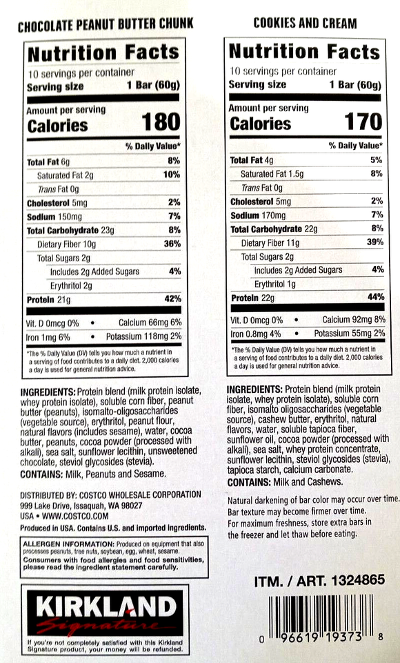 Kirkland Signature Protein Bar Variety Pack Chocolate & Cream 20 Ct EXP 12/2026