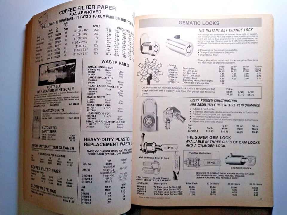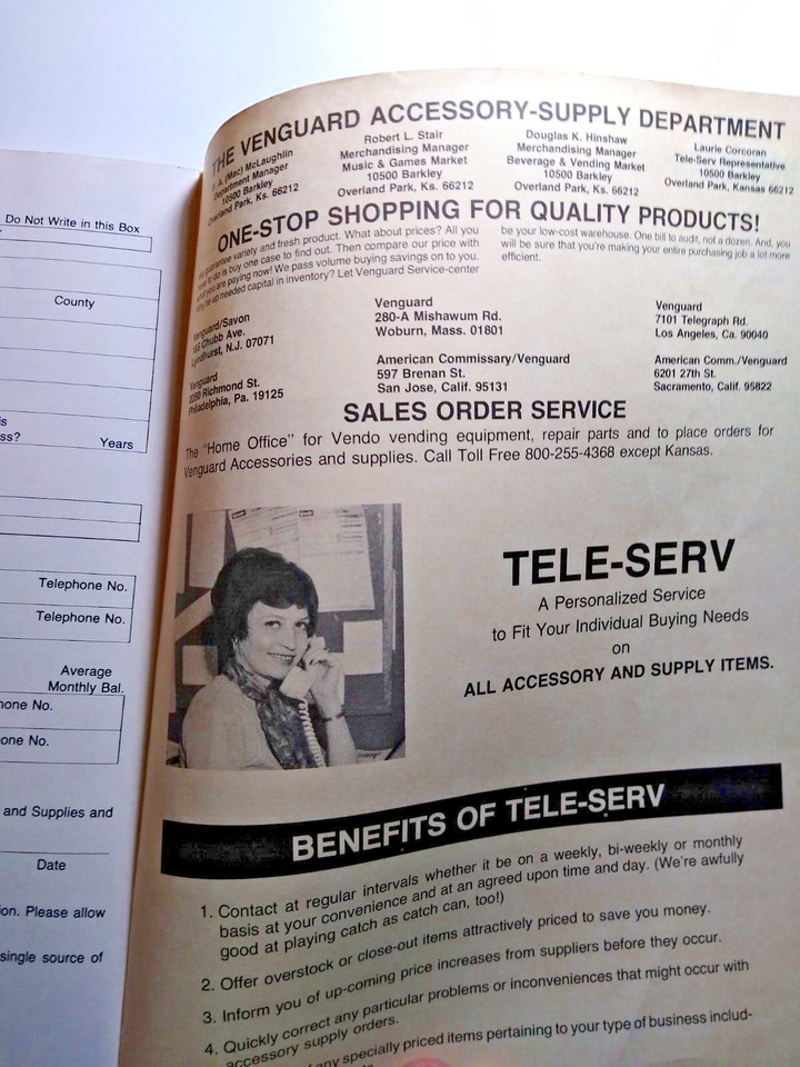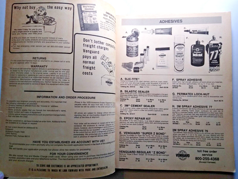 Venguard 1978 Vintage Vending Soda Popcorn Tools Pinball Parts Price Catalog