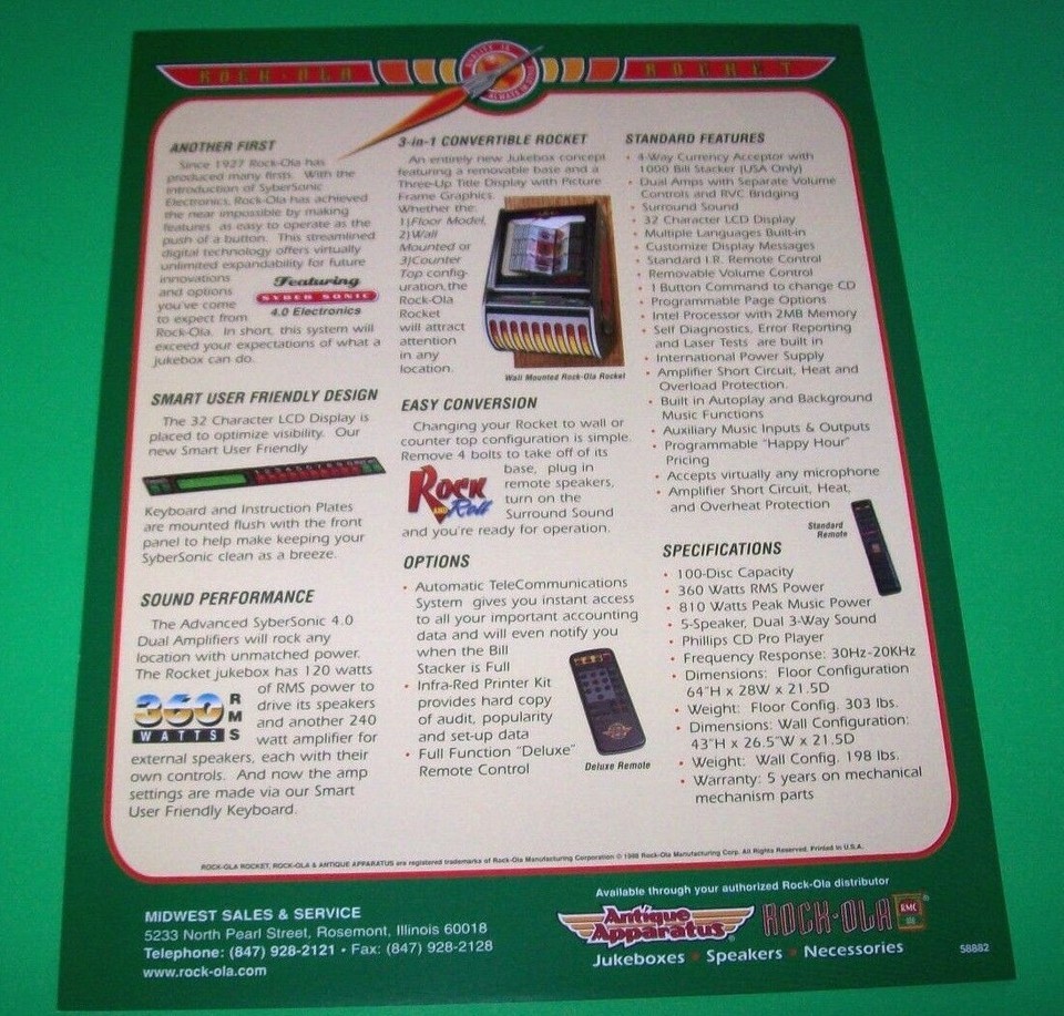 Rock Ola New Rocket Jukebox FLYER Original and similar items