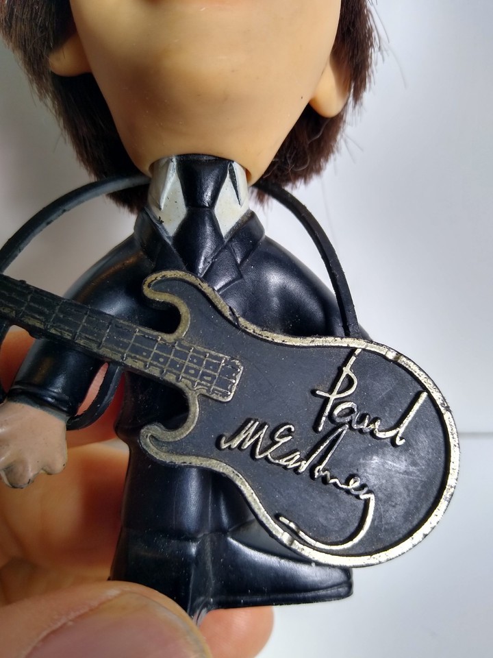 Original 1964 Remco Paul McCartney doll. Hard body version. He has the original guitar and hair. Stands 4.5" tall. Clean condition with light age wear. Crack on the guitar strap.