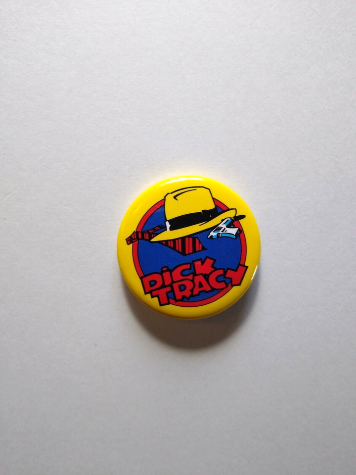 Vintage original licensed official Dick Tracy movie pinback button badge. Marked "Disney on the brim.". Amazing condition. 1.75" size.