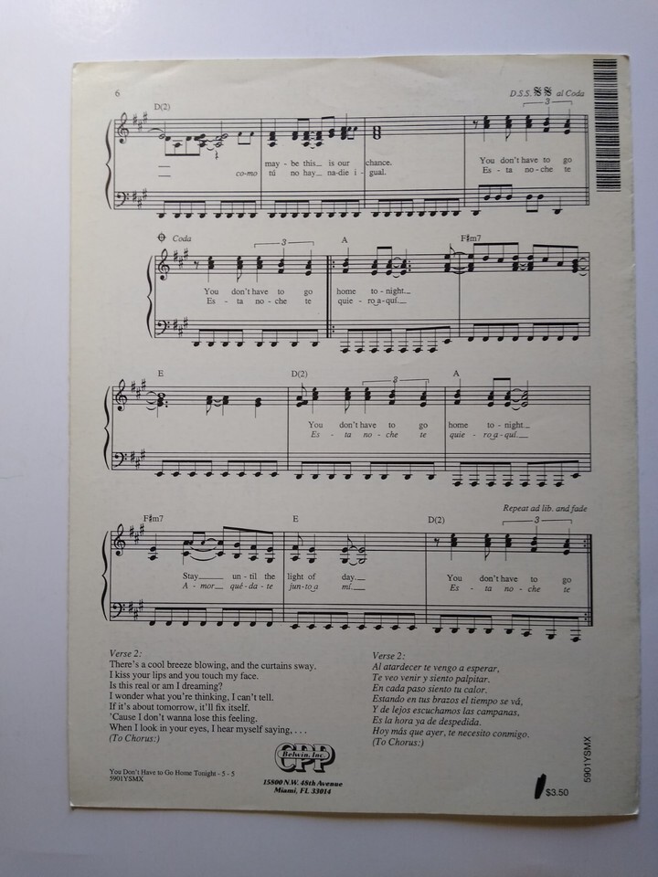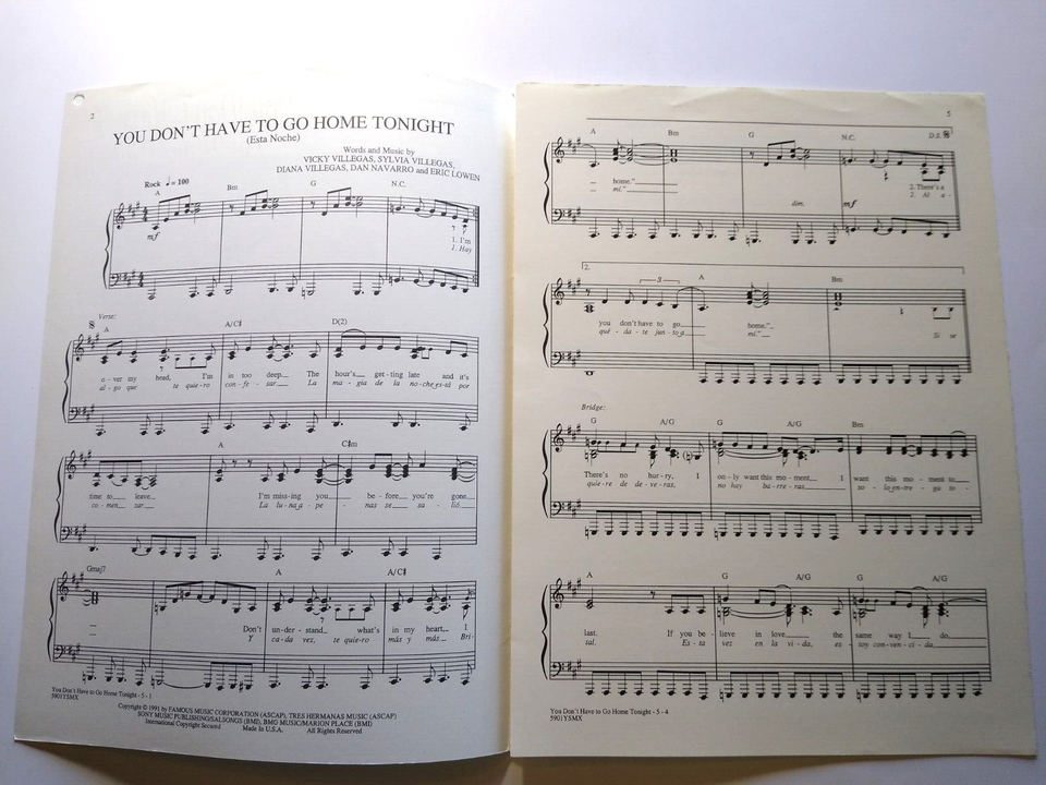 You Don't Have To Go Home Tonight Triplets Sheet Music 1991 Pop Rock Music Song