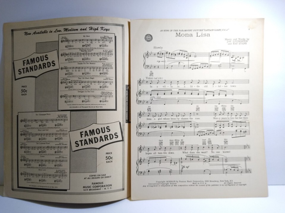 Mona Lisa Sheet Music Alan Ladd Wanda and 48 similar items