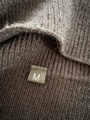 Purchased at a local boutique, this size medium sweater is so generously oversized that it could almost be worn as a dress, perfect for cabin cozy weather in front of the fireplace. Funnel neck and horizontal rib. Laying flat measures 30 inches shoulder to hem and 24 inches armpit to armpit.