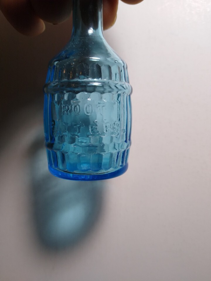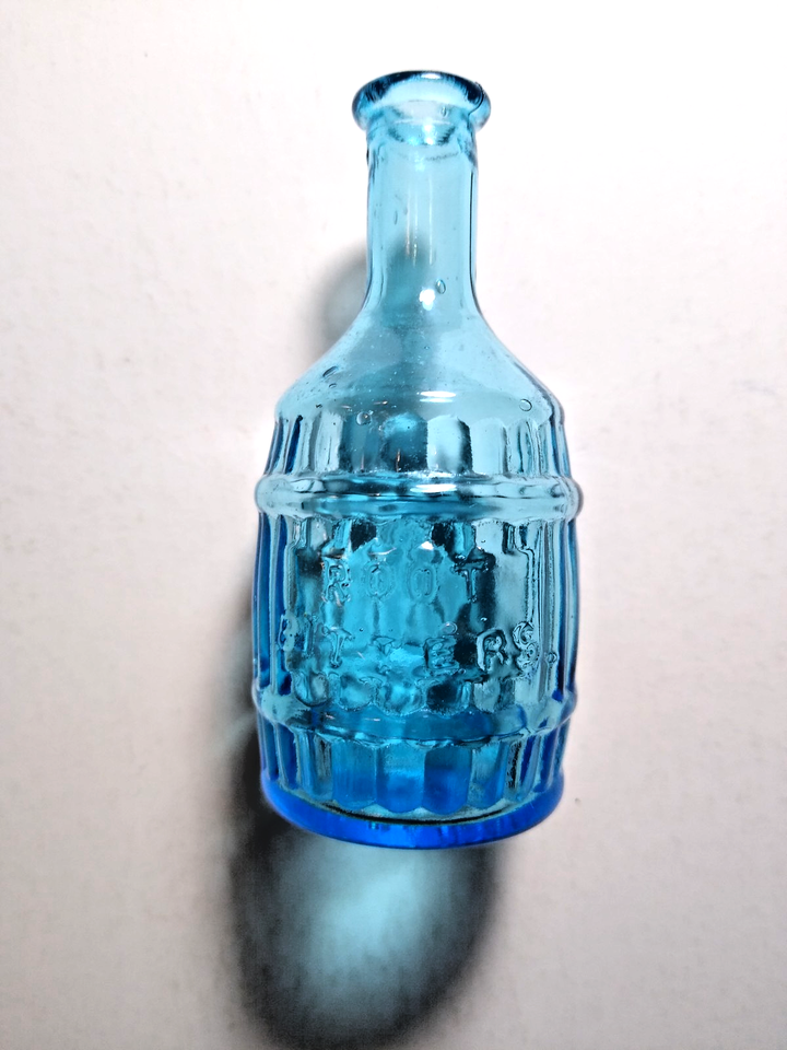 Blue Carnival Glass Bottle Root Bitters Medicine 1970's Apothecary 3" Taiwan