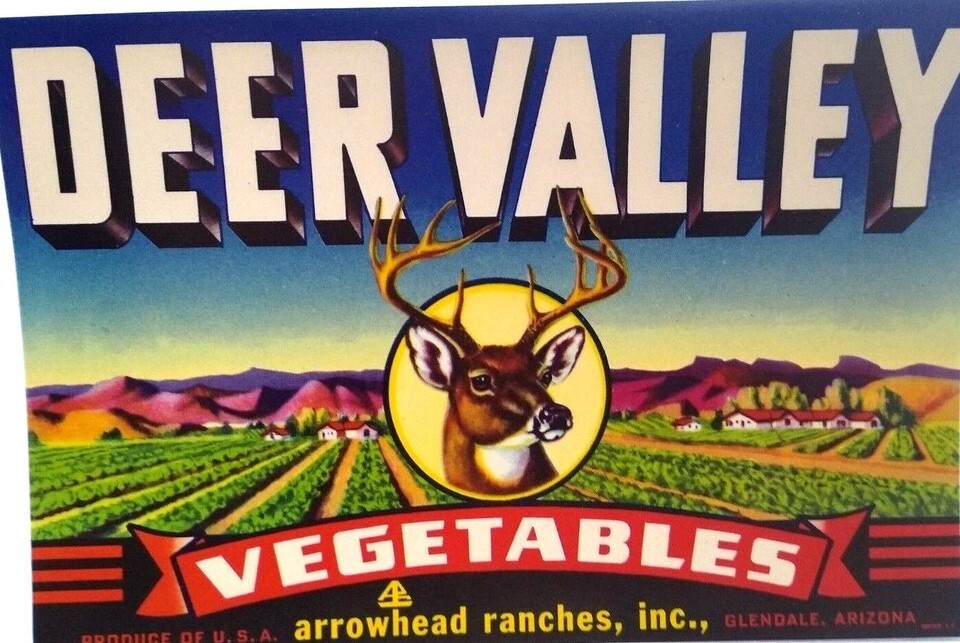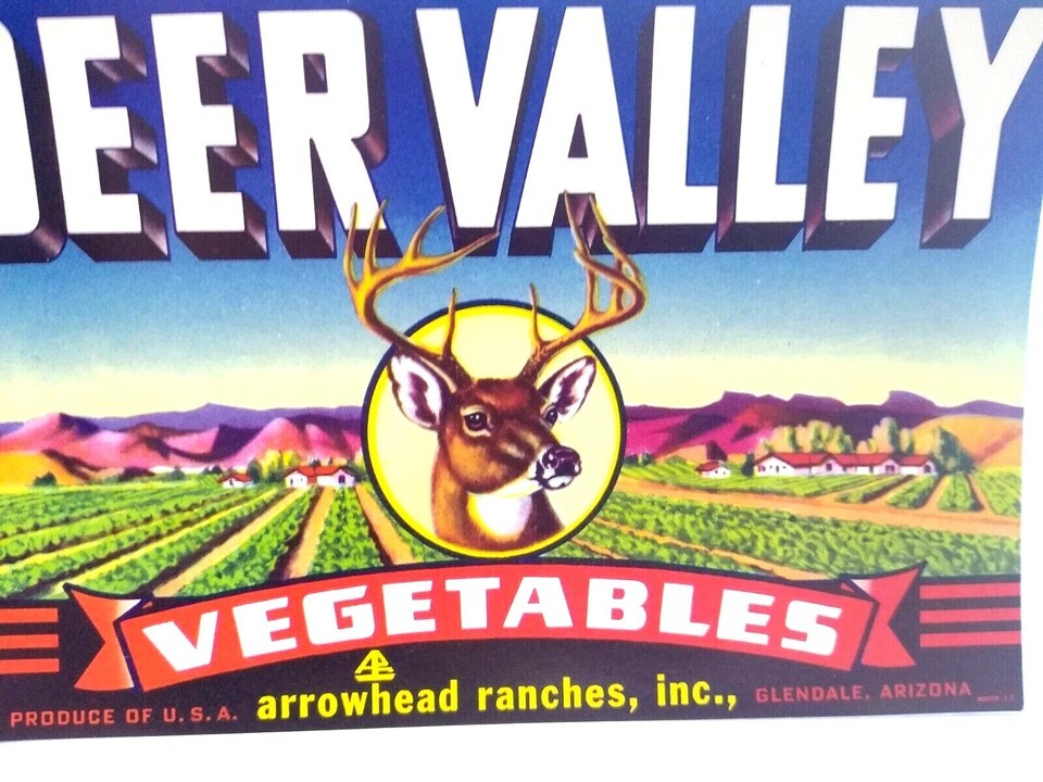 Deer Valley Vegetables Arrowhead Ranches Vintage Crate Label 1950's Original