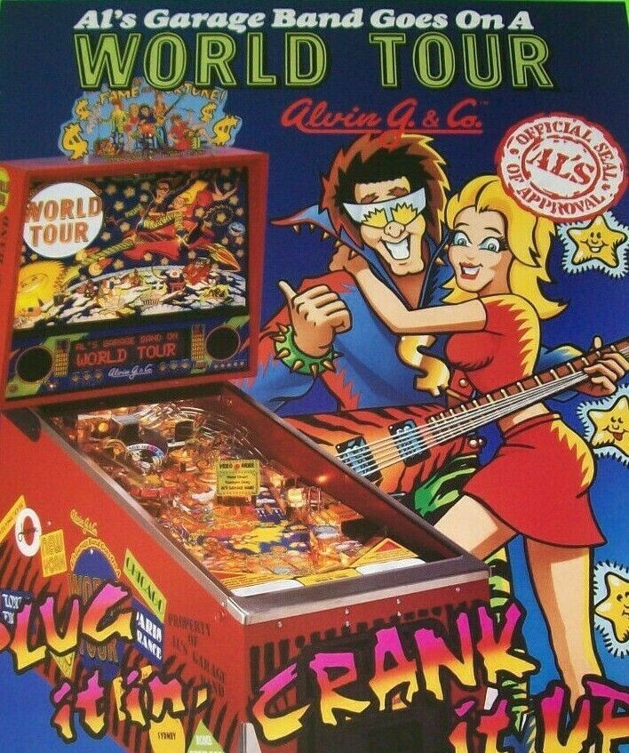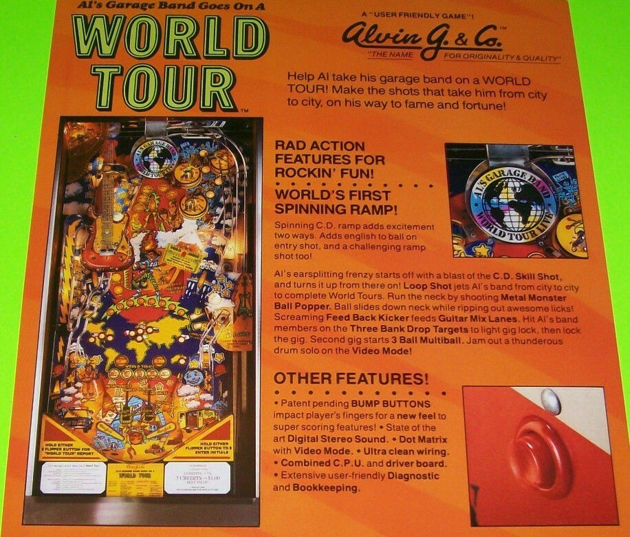 World Tour Pinball FLYER Original NOS Alvin G 1992 Game Artwork Sheet Rock Music