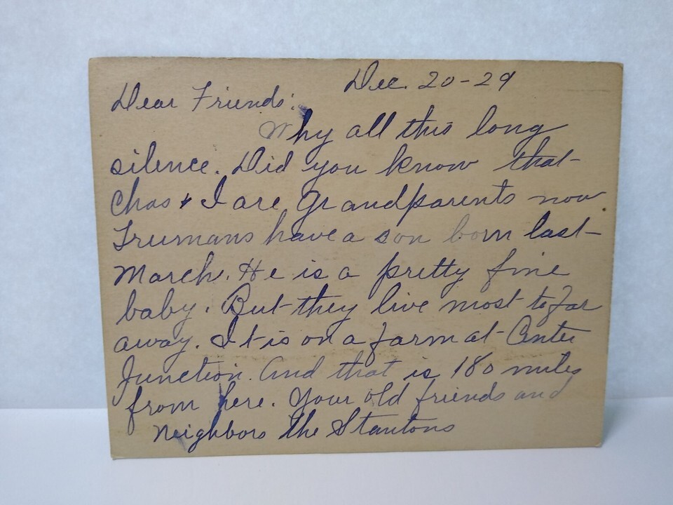 Vintage early greeting card. Heavy stock single sided artwork. Has some corner wear. Writing on back. Size is 4.25" x 5.5" Stock#gc53.