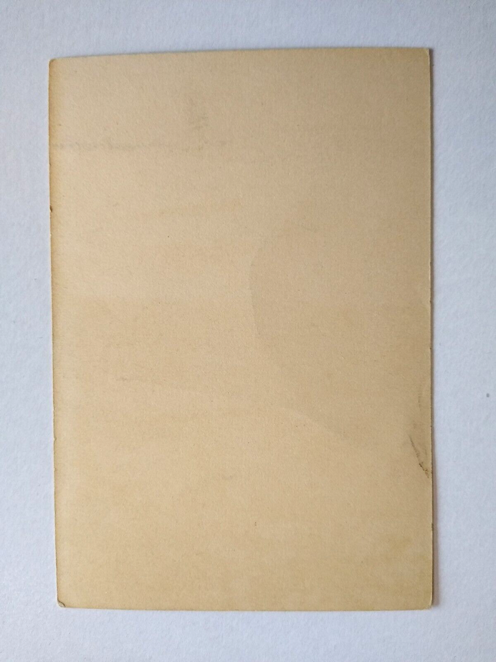 Vintage greeting card. Single sided plain back Writing on front. Has some creases and age wear. Size is 4.75" x 3.25". Stock#gc56.