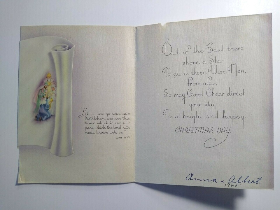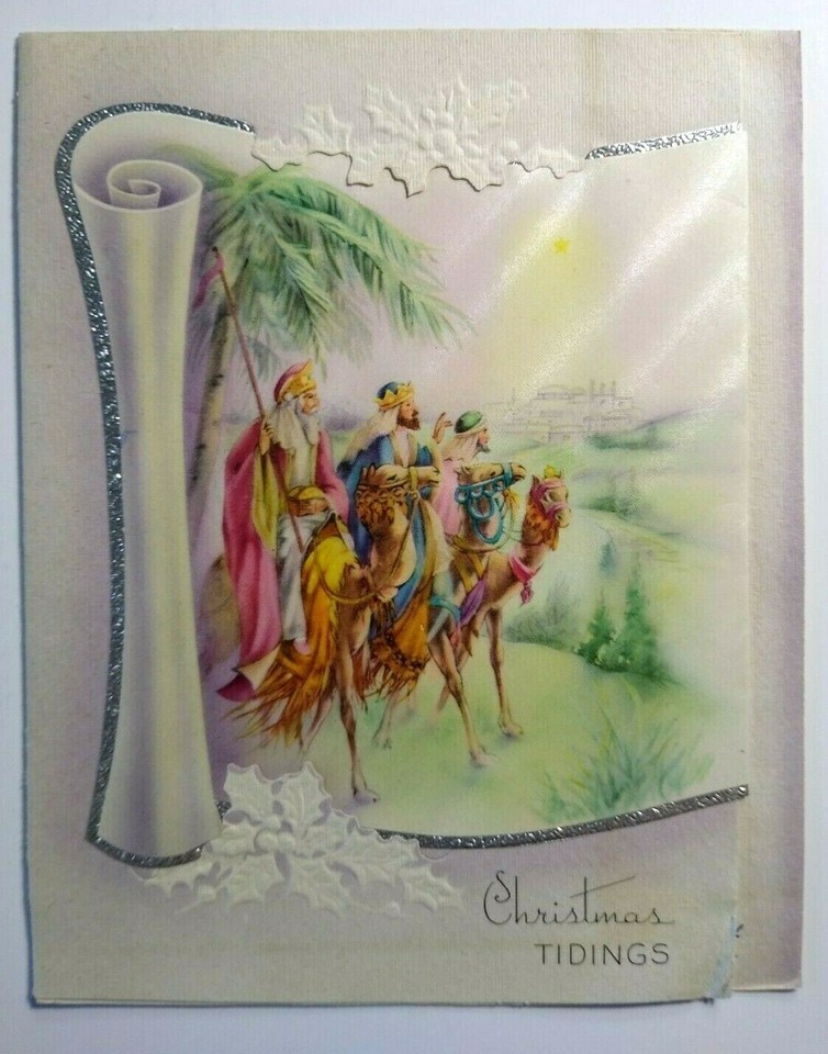 Christmas Tidings Camel Riders Greeting Card Embossed Fancy Diecut Vintage 1945