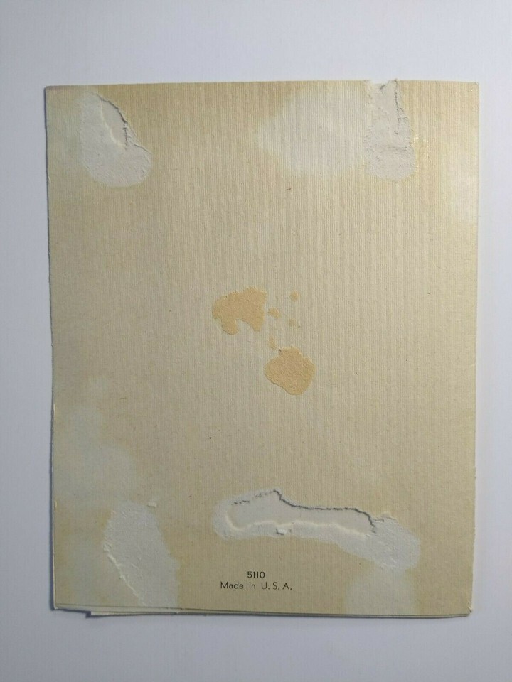 Circa 1940's mid century modern vintage original used greeting card. Size is 4.5" x 5.75". Has some age wear to edges and damage to back panel from album removal. No. 5110 USA on back. Stock #gc5.