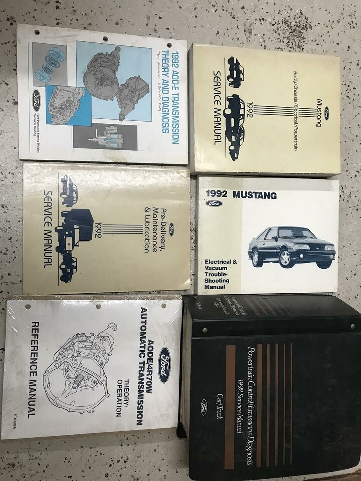 1992 Ford MUSTANG Service Manual,Transmission Reference Manual, Electrical Vacuum Troubleshooting Manual, Pre Delivery Manual, Transmission Reference Manual, Transmission Training Manual, Powertrain Control Emission Diagnosis Manual