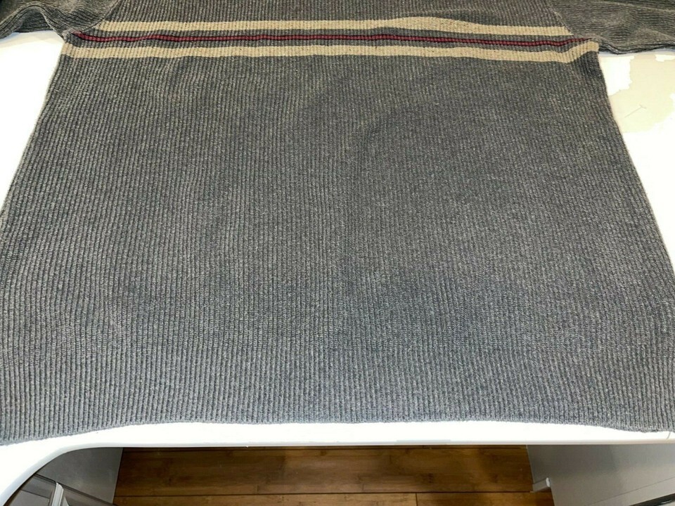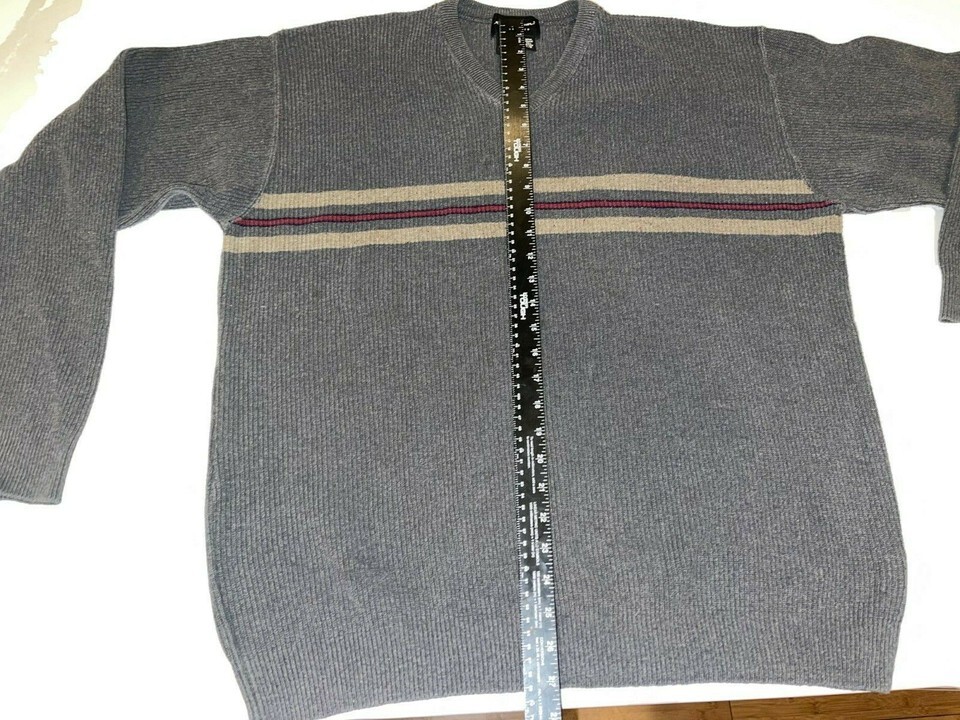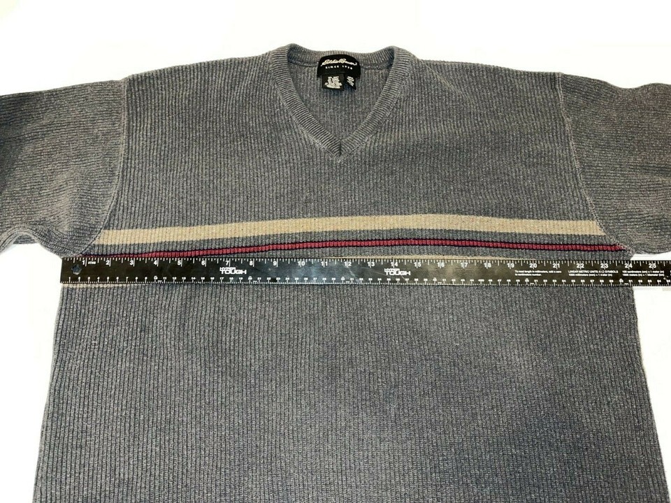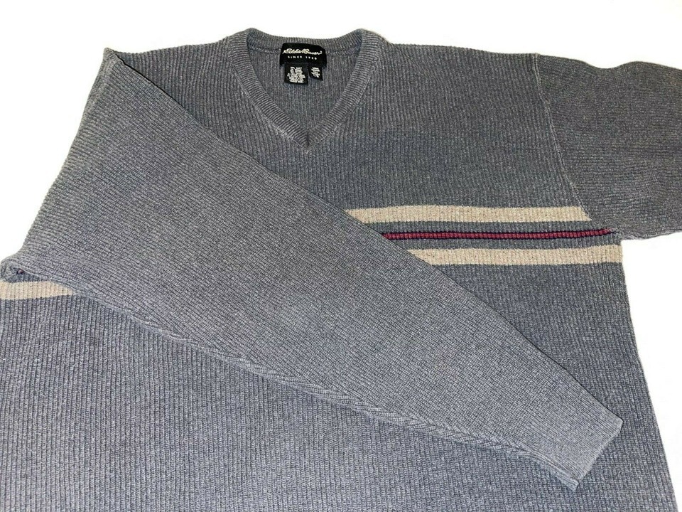 Mens Eddie Bauer Long Sleeve Grey Bulky Knit Sweater with Stripe across chest
