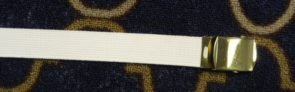 NEW MILITARY TACTICAL UNIFORM WHITE ADJUSTABLE COTTON WEB BELT WAIST 61" HAS A GOLD BUCKLE AND GOLD TIP