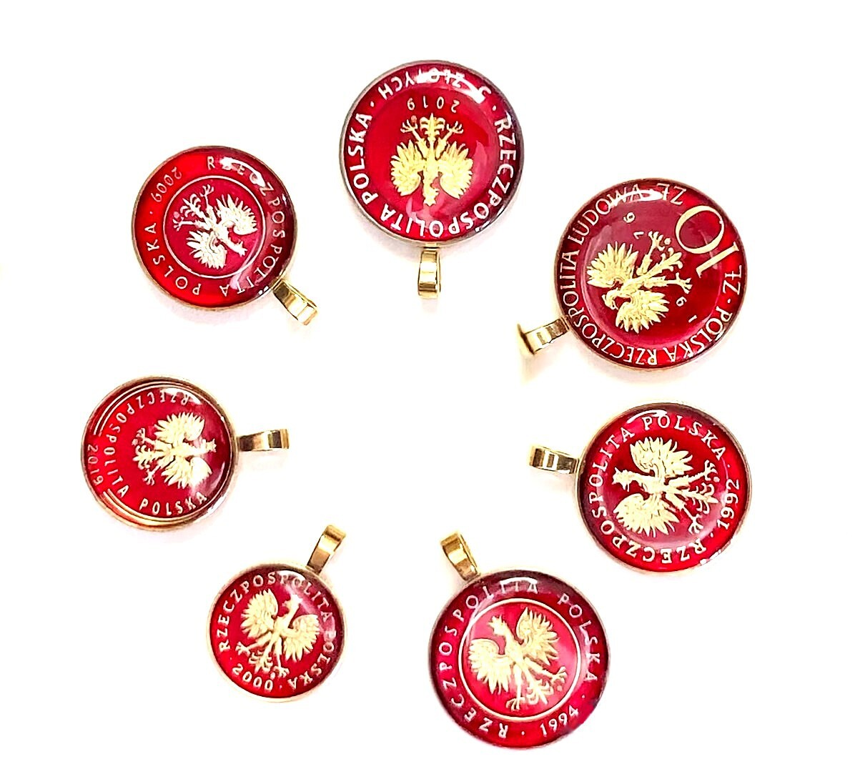 Handmade Polish Eagle Pendant: Enamel Polska Jewelry, Red Pendants from Poland.