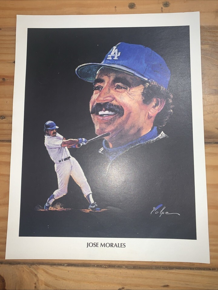 The product is an original 8x10 inch print featuring Jose Morales of the Los Angeles Dodgers from the 1982 Major League Baseball season. The print is not officially licensed but is considered vintage sports memorabilia. Made in the United States, this unique piece would be a great addition to any baseball fan's collection, capturing a nostalgic moment in baseball history.